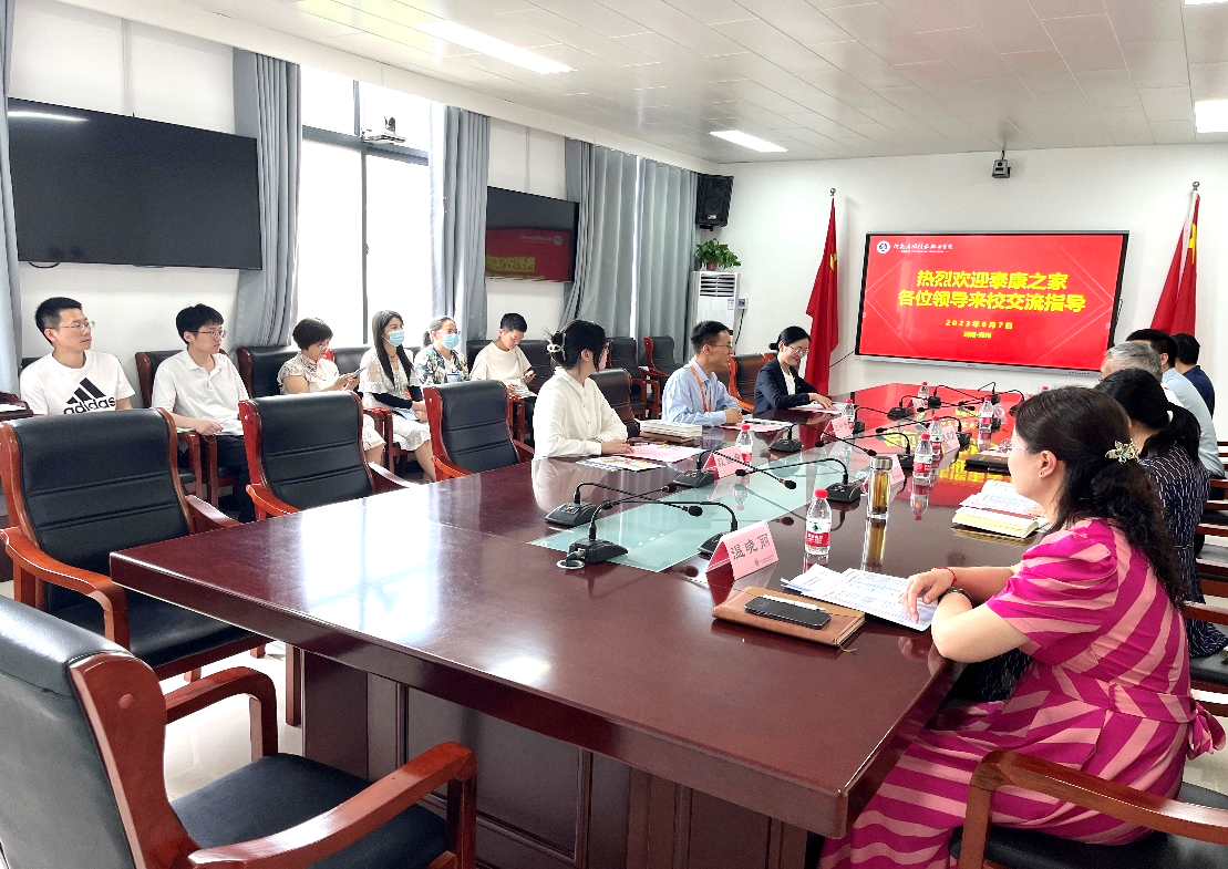 2023年6月7日上午,泰康之家豫园(郑州)养老服务有限公司人力资源总监王中升,人力资源主管孙卫婷,人力资源专员段佳音一行来公司参加校企合作交流座谈会,公司党委副书记朱东方,校企合作与就业处处长李海富,护理公司经理王风云、书记杨明杰、副经理温晓丽及护理公司相关人员参加会议。会议在A315会议室举行,由护理公司经理王风云主持。