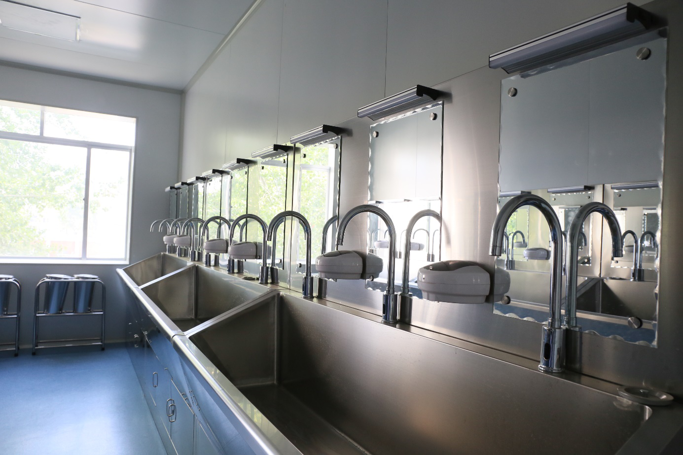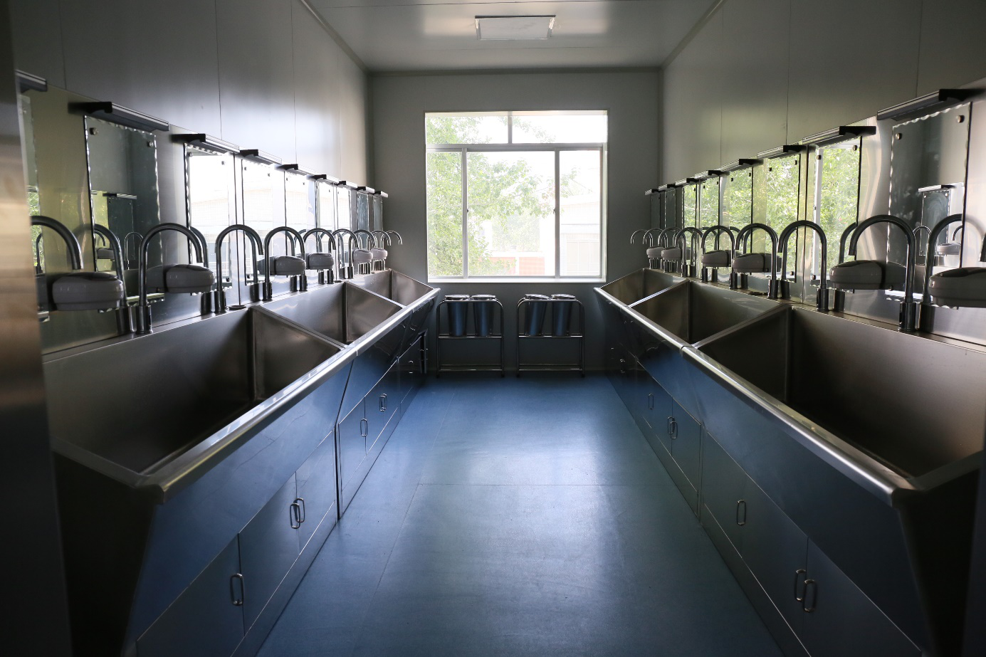 (1)实训室简介:本实训室的核心设备为外科刷手设施,与医院设施一致,员工可以真实练习外科手消毒。本实验室建成后,受益员工已经达到900人,承担妇科技能训练达到2400人次。