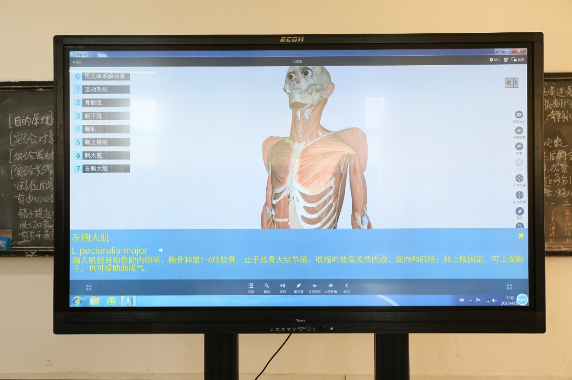 (3)特色说明:拥有ECDH数字人解剖系统;教学设施的配备都能注重员工的积极性,知识的严谨性。先进设计理念适应了现代医学解剖模式改变,有利于开拓员工的视野,提高员工的学习兴趣,培养员工的创新和思维能力。通过虚拟实验室这个平台,员工既可以在虚拟实验台上动手操作,又可自主设计实验,有利于培养操作能力、分析诊断能力、设计能力和创新意识,使员工更易获得知识。