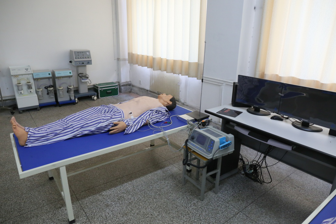 (1)实训室简介:本实训室的核心设备有多功能高仿真智能化模拟人,另配备有无创心电监护仪、电除颤机、抢救车、全自动洗胃机、呼吸机及输液泵等相关设备。本实训室可以承担急危重症患者的病情监护、心肺复苏、心脏电复律等急救护理技术实训操作练习。并具备多学科重症患者病例研究、急救护理技术研究等方面科研功能。是目前非常先进的综合实训室,员工可以进行心肺复苏技能操作的训练;无创心电监护仪的使用训练;电除颤技术训练;洗胃技术训练等。使用高仿真模拟情景教学系统,可以培养员工以病人为中心的综合操作能力、应变能力及团队协作能力,以护理小组为单位开展重症监护环境护理技术、重症监护基本技术等实训教学,对培养高素质综合性护理人才具有重要价值。本实训室建成后,受益员工已经达到800人,承担心肺复苏技能训练达到4000人次;心电监护仪使用训练800人次;电除颤技术训练800人次;洗胃技术训练800人次。