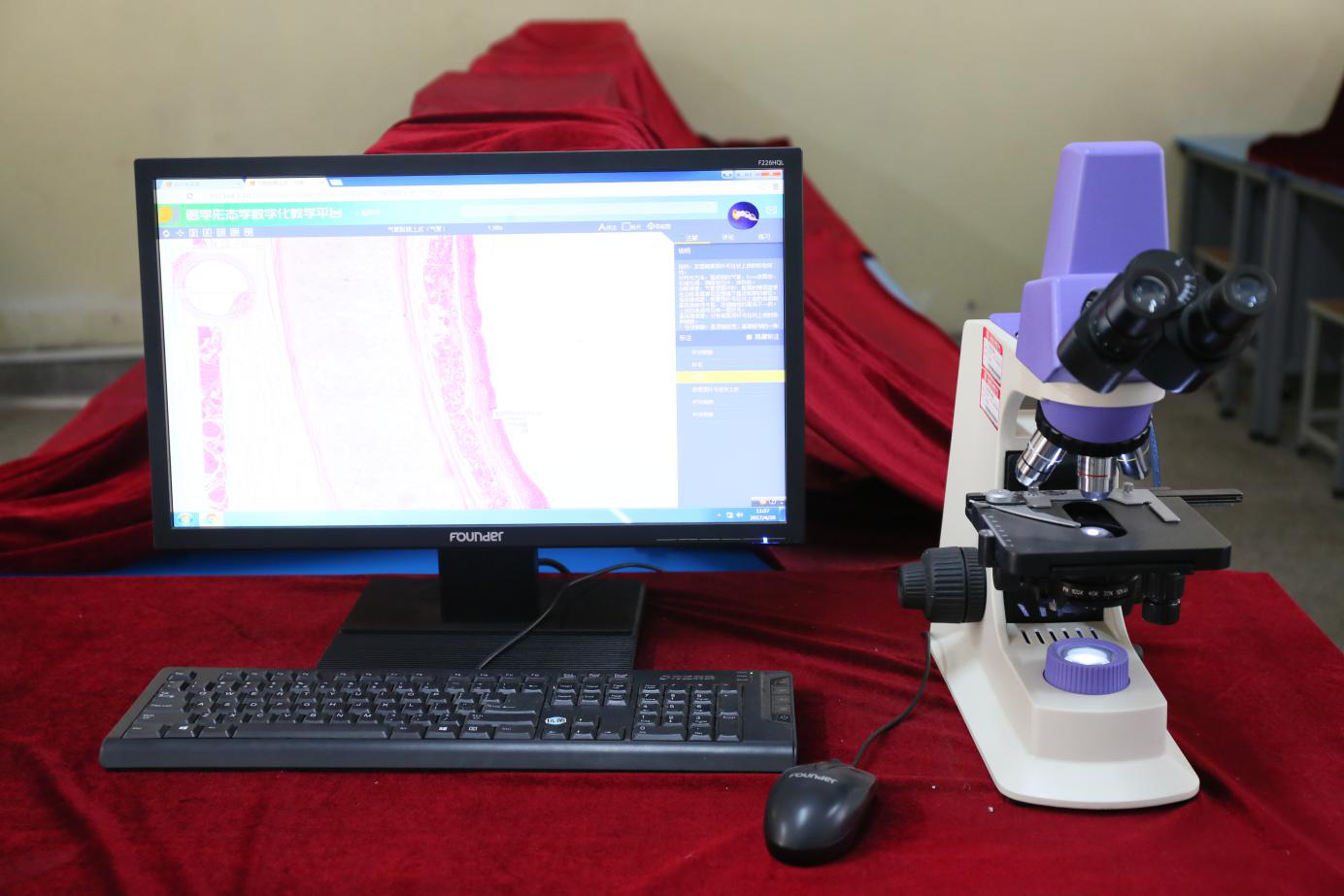 (1)实训室简介:本实训室的核心设备有医学数码互动系统,员工可以在显示屏下高倍数观察生理病理切片、组织细胞等超微结构;本实验室建成后,受益员工已经达到1万人,承担应用数码教学达到1万人次。