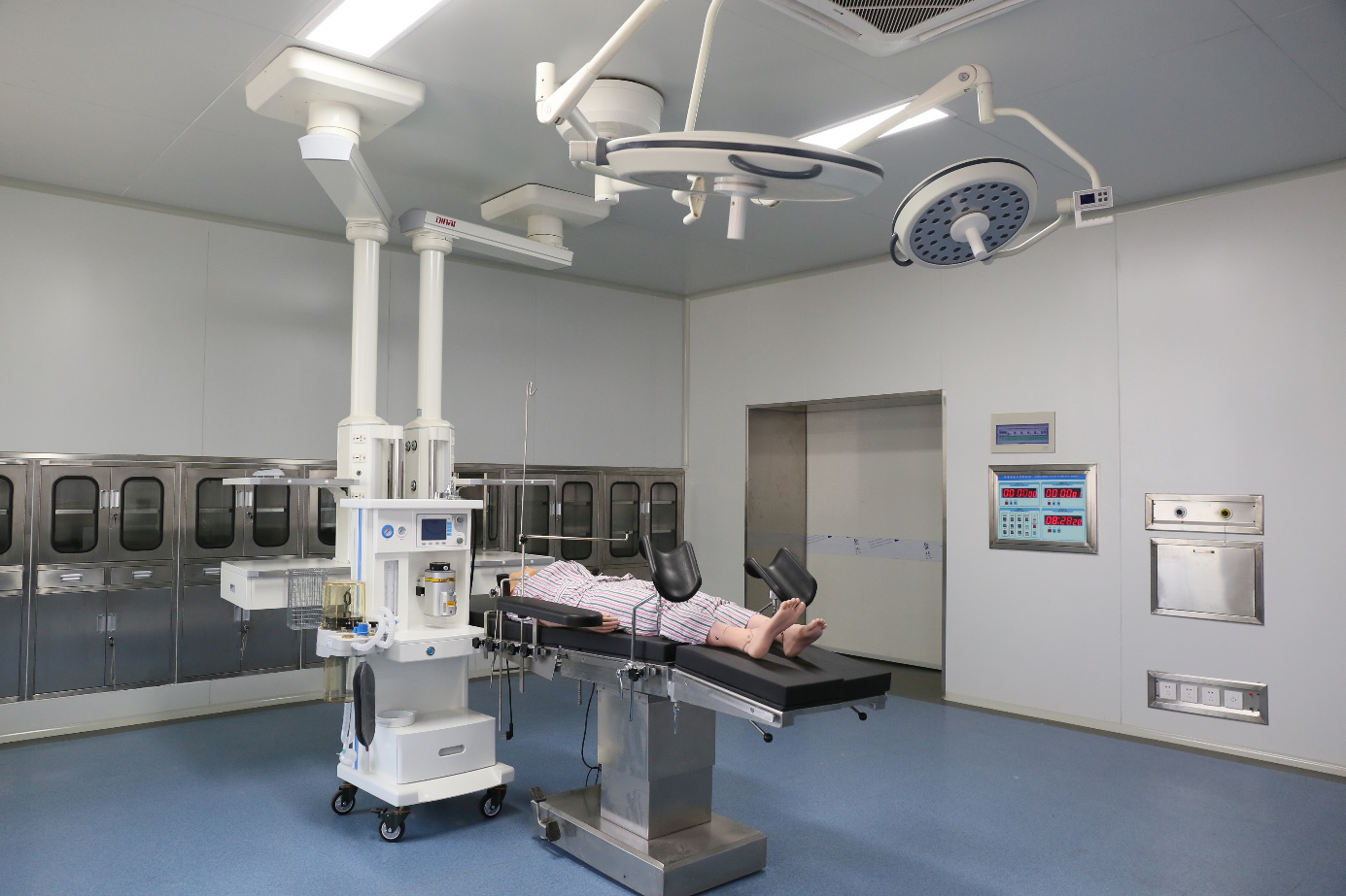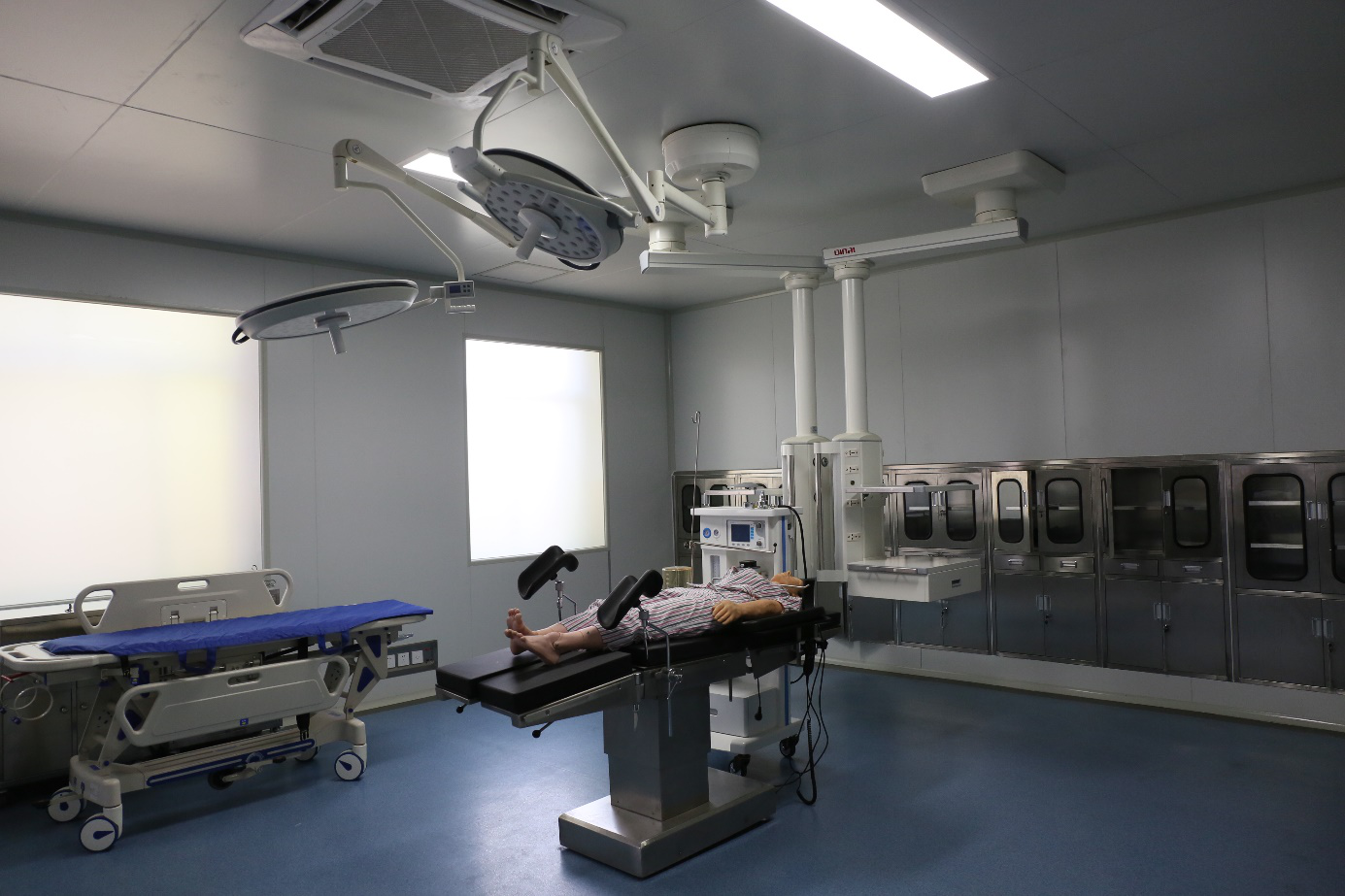 (1)实训室简介:本实训室模拟医院手术室建设,具有手术室的电动门、中央空调、无影灯等设施,核心设备有电动吸引器、铺巾模拟人、手术床等,员工可以直观地了解手术室的构造,并在手术床上进行手术前铺巾等训练;本实验室建成后,受益员工已经达到900人,承担妇科技能训练达到3600人次。