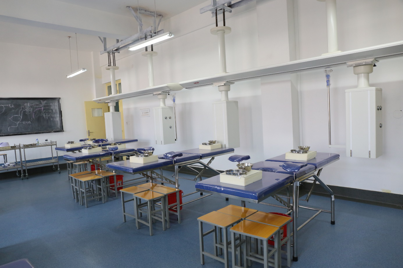 (3)特色说明:本实训室模拟医院手术室建设,员工可以直观地了解手术室的构造,让员工切实掌握手术需要的环境,能够正确进行手术前的准备。